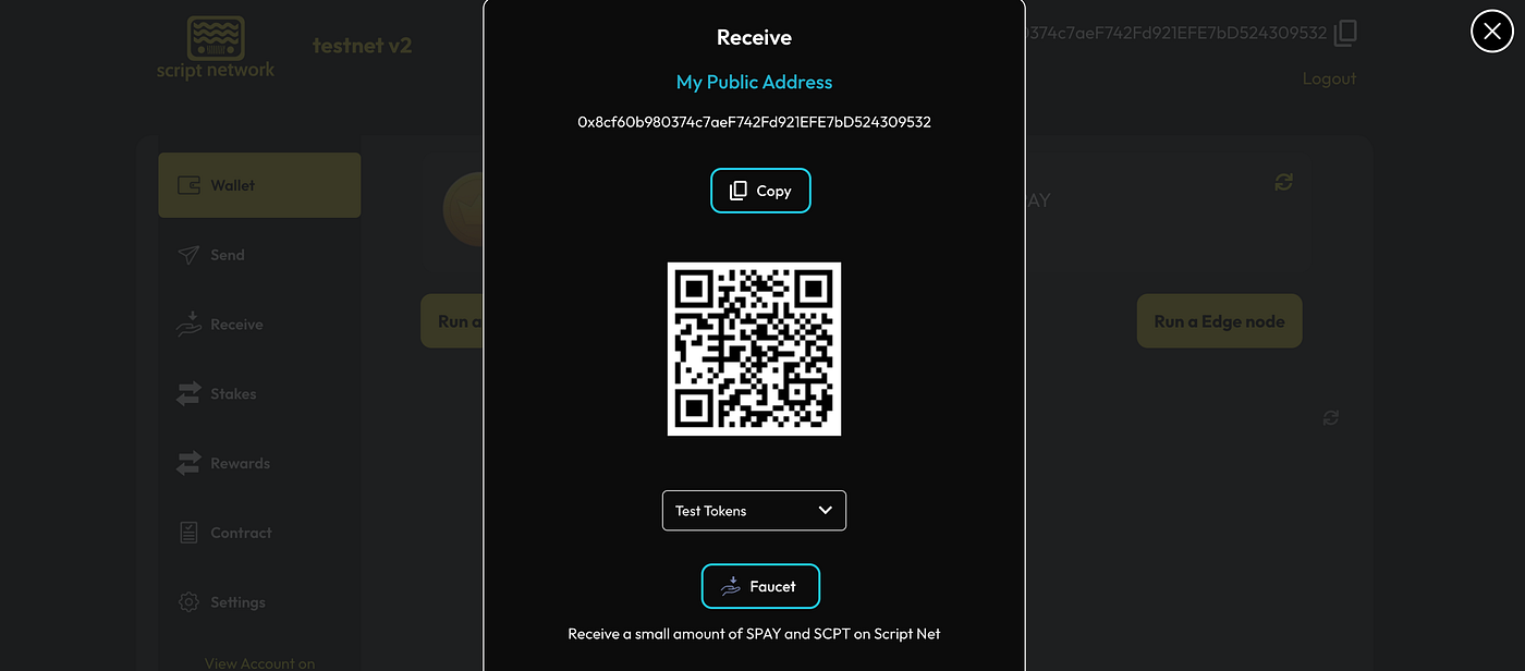 — Request funds from faucet (SPAY/SCPT)