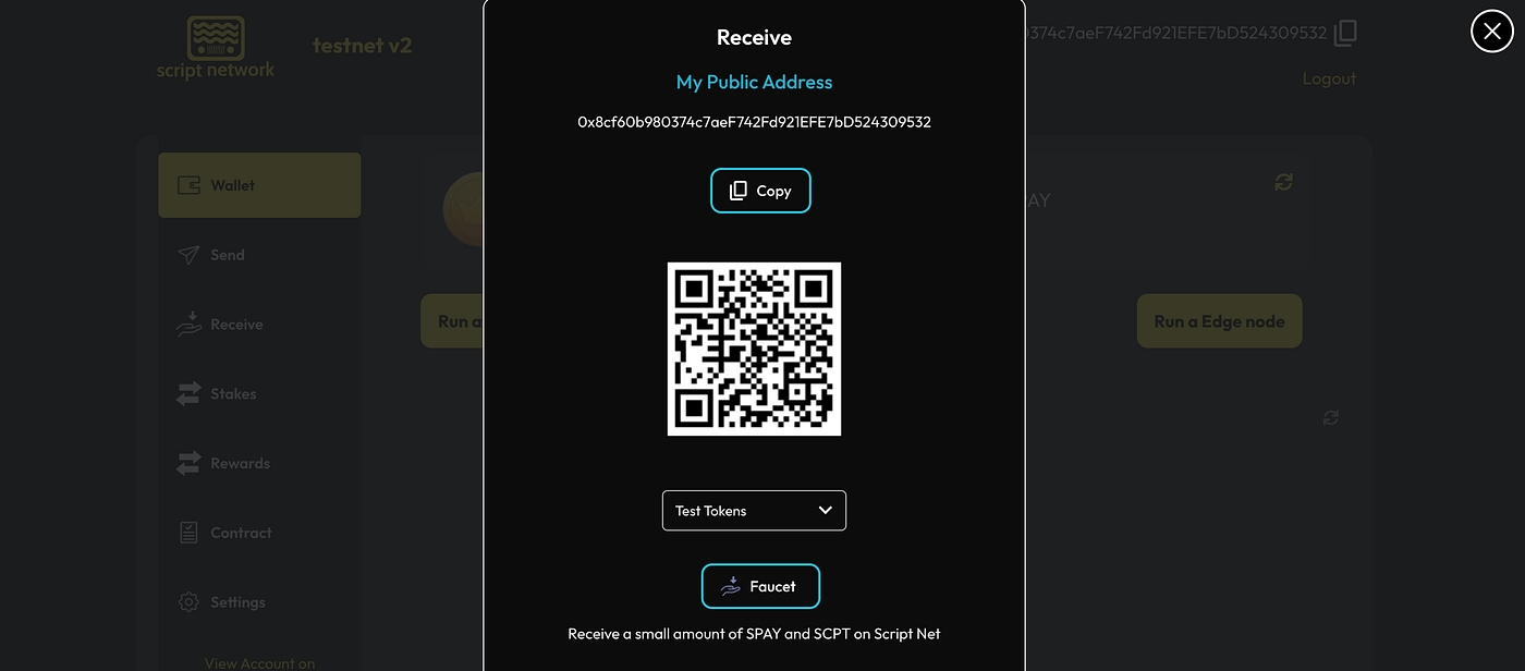 SCPT is the governance token, and is the token required for staking. SPAY is the token for transactions and rewards. To request SCPT tokens, you need to put your wallet address (and nothing else), in the discord channel named #token-faucet