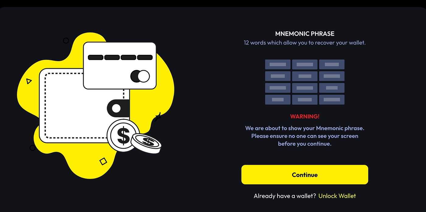 Press continue and you will see your 12 word phrase and your private key. Keep these safe and do not share them with ANYONE under any circumstance. No member of Script Networks’ team will EVER ask you for this information.