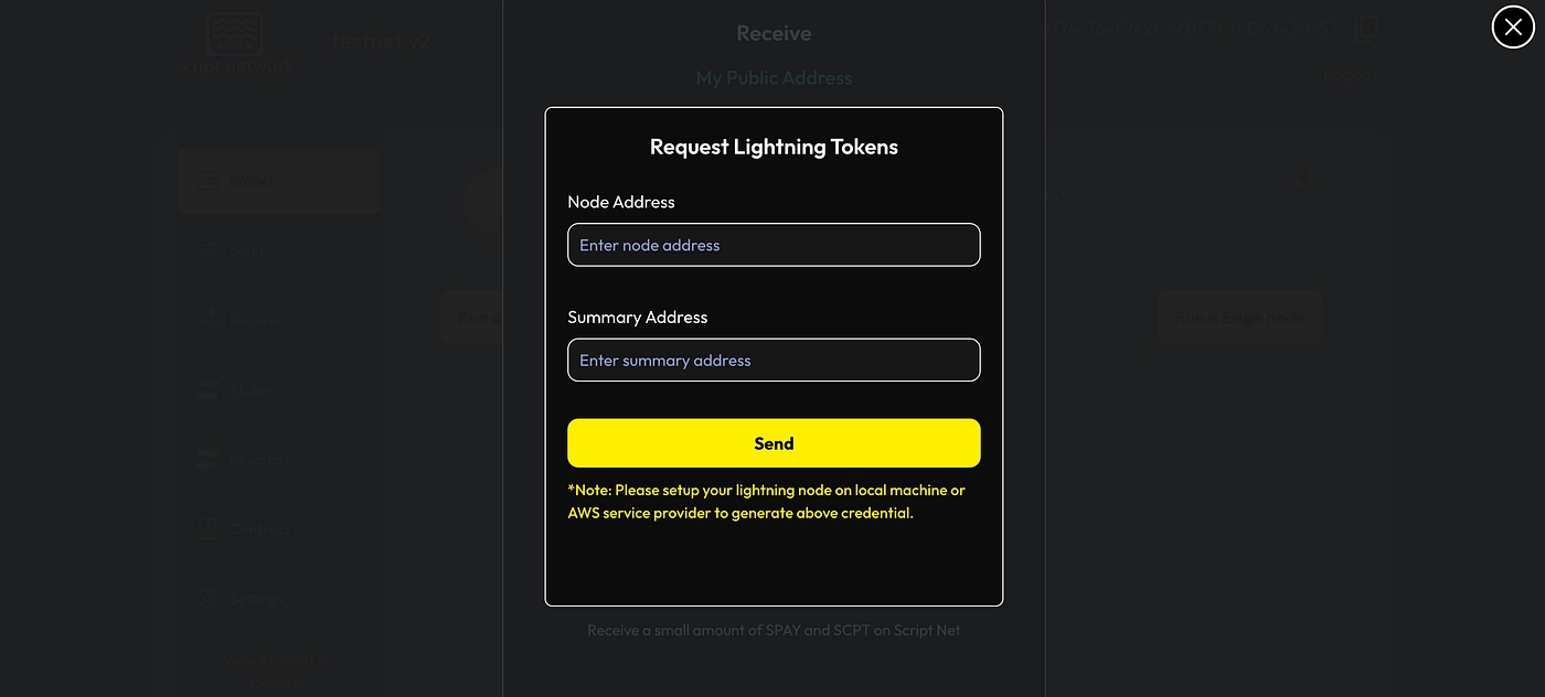 You can only complete the above area if you have set up a lightning node after June 21st @ 17:00 UTC. Any lightning nodes created before this, will be invalid. If the summary and node address is correct, you will then receive testnet tokens to run a lightning node. Also to confirm, you do not need extra / any tokens to set up and run an edge node.