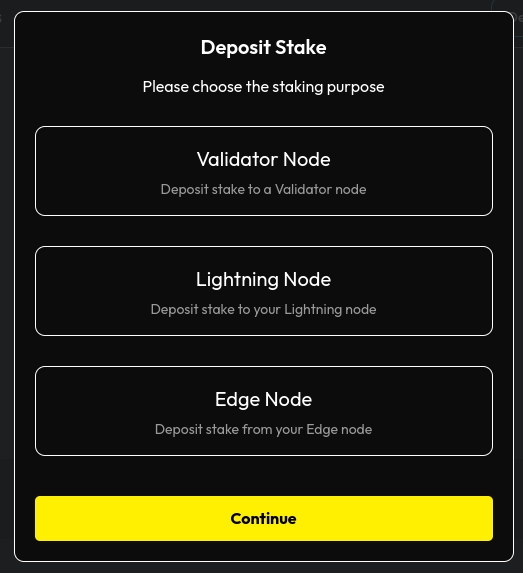 Click on On-Chain Stakes, then Deposit Stake and then continue with Lightning Node.