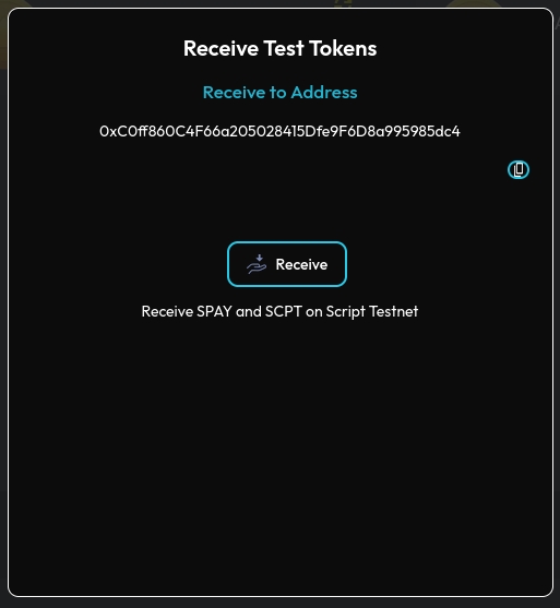 Faucet is a testnet-only feature that allows testing applications and mature monet-handling algorithms using play money, instead of risking real-money in the mainnet. Only if your current balance is under 100000 SCP every time to click on Receive button 1000 SCPT and 100 SPAY are transferred to your balances. # 15 seconds after clicling the receive button you balance screen would reflect your new balances and a new entry in the transaction history list.