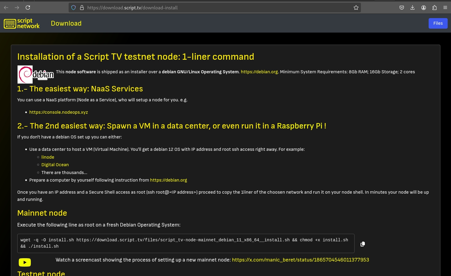 1.- get a debian-12 VM in a datacentre or as a raspberry pi or headless computer. (e.g linode.com, digitalocean.com)