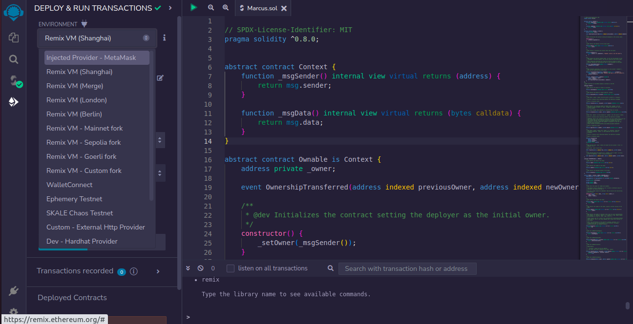 1. Open [Remix IDE](https://remix.ethereum.org) in your browser