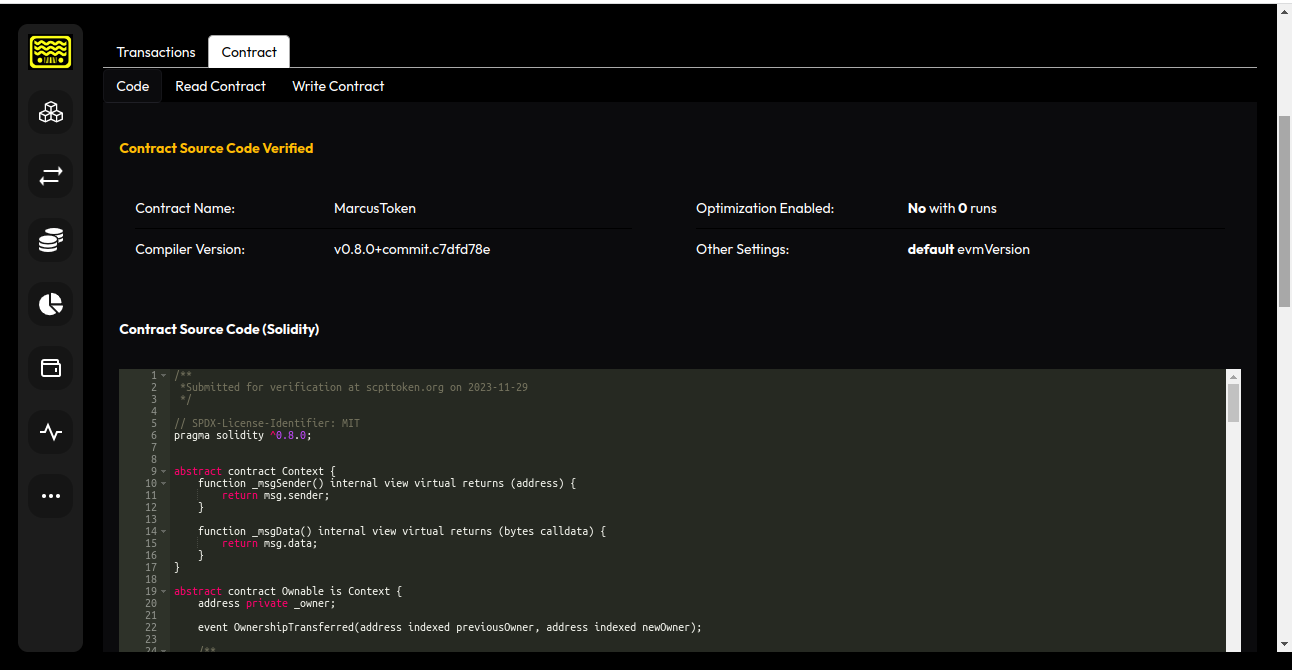 7. After verification you will get to see the functions enabled on explorer corresponding to deployed contract with contract details.