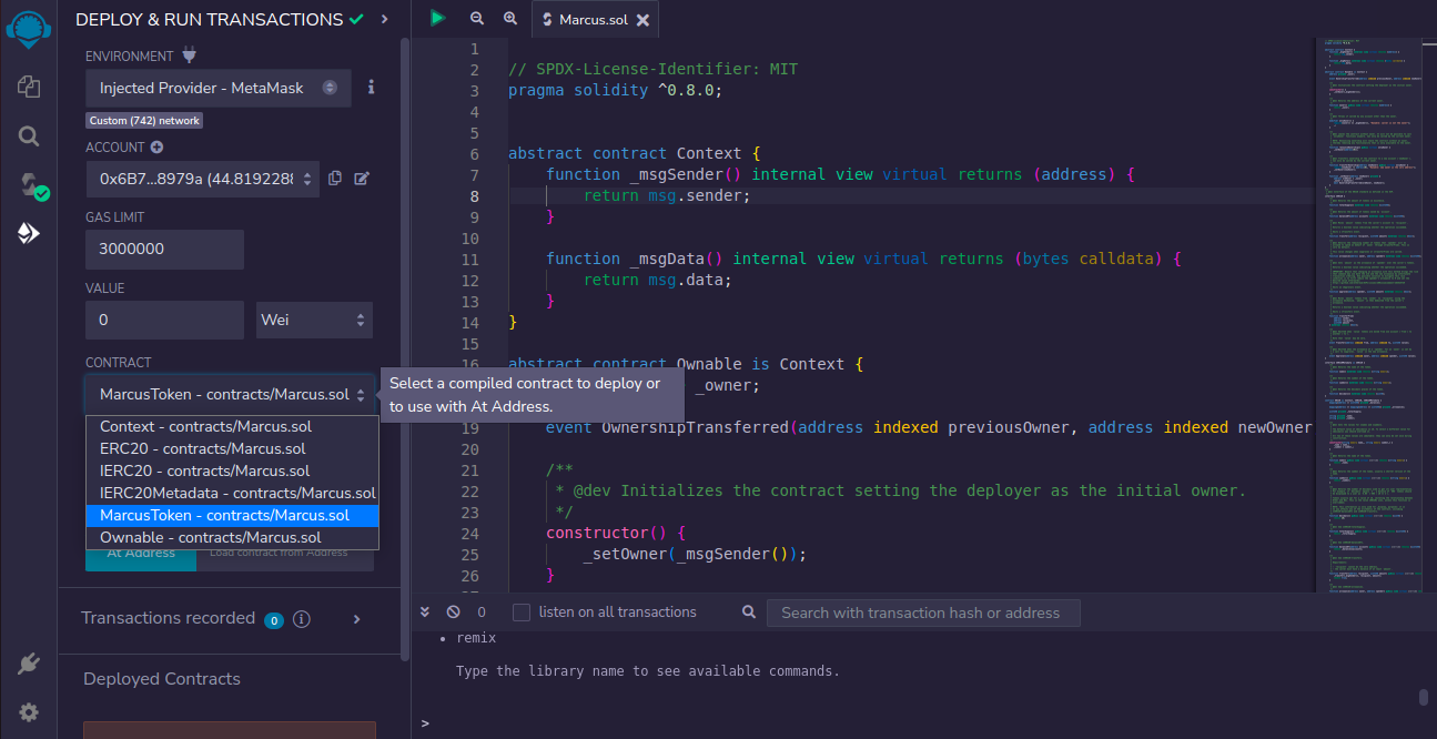 * Select the main contract of your compiled contract where all the function were called or inherited into it from Contract dropdown.
